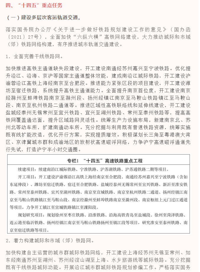 重磅!江苏省“十四五”铁路发展暨中长期路网布局规划印发